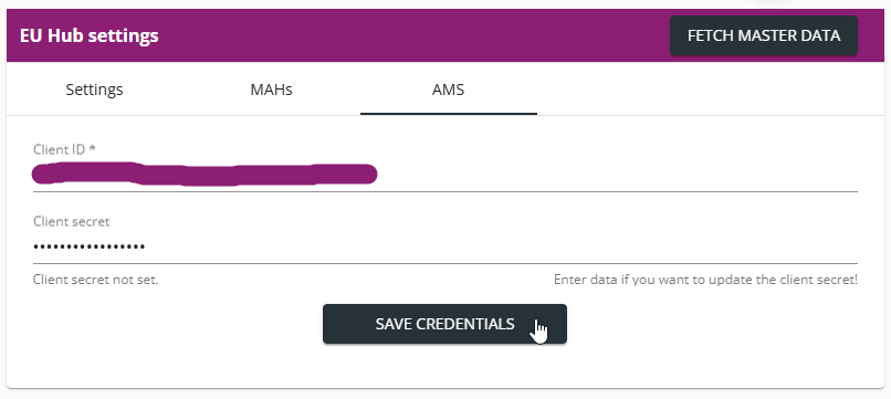 6. On the EU Hub settings panel, click Fetch Master Data.