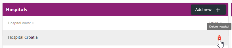 Note: When viewing the details of a hospital, you can open the Create hospital form by clicking Add new +.