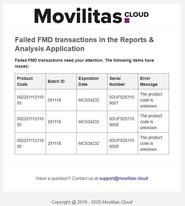 If a single transaction fails, the application sends an email to the administrators of the tenant, and optionally to the operator who performed the shipping in the mobile application.